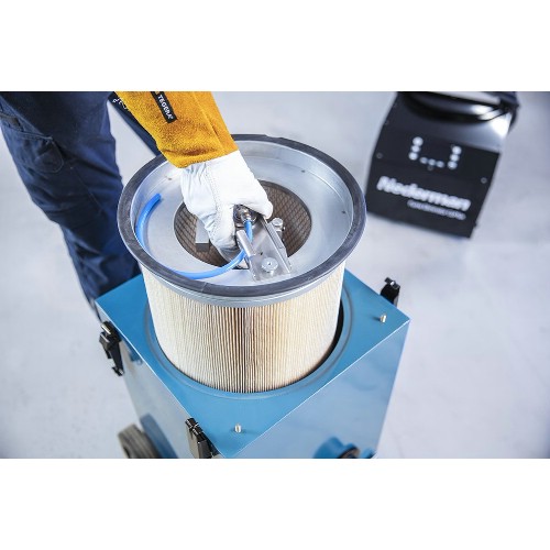 Intelligent och energieffektiv rökutsug för svetspistoler vid manuell och robotiserad svetsning. Effektiv utsugssystem för svetsrök utformat för användning direkt på svetspistolen, perfekt för robot-, cobot- och manuell svetsning. Svetsrök fångas upp direkt vid källan innan den hinner spridas i luften, vilket minskar risken för exponering av skadliga ämnen. Säkerställer ett konstant luftflöde i både automatiserade och manuella svetsprocesser. Kompakt och mobil design, enkel att flytta, men kan även monteras på vägg. Ger ökad produktivitet genom att betjäna två arbetsstationer samtidigt. Försedd med borstlös 3-fas 400 V motor på 2500 W. Underhållsfri fläkt som genererar högt luftflöde. Intuitivt användargränssnitt. Automatisk start, stopp och justering av luftflöde. Aviseringar för tömning av dammbehållare och filterbyte. Med avancerat Nanofiberfilter (W3) som renar 99,7% av partiklarna. Automatisk rengöringsfunktion. Säkert filterbyte. Kan kompletteras med HEPA-filter eller utsugsslang. Kulventil och sensorklämma ingår ej.