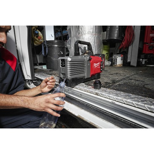 Batteridriven vakuumpump 18 V Li-Ion med kolborstfri motor. Kompatibel med samtliga A1-, A2L- och A2-klassade köldmedier. Med upp till 90 min drifttid per M18 High Output 8,0 Ah-batteri. 1/2"-, 3/8"- och 1/4"-anslutning samt en 5/16"-adapter. Automatisk kulventil för att isolera systemet när pumpen är avstängd. Backventil håller vakuumet för att undvika dubbelarbete vid batteribyte. Indikerar lågt batteri med både ljud och ljus. Gasventil reducerar antal oljebyten. Stor oljeanslutning för att ta bort behovet av tratt. Vinklad oljeplugg underlättar oljebyten. Redlink Plus-elektronik med avancerad kommunikation mellan batteri och verktyg. Flexibelt batterisystem, passar samtliga Milwaukee M18-batterier.