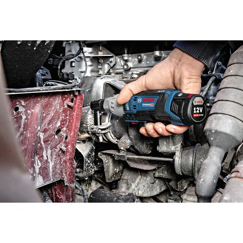 Kompakt spärrskaft 12 V Li-Ion med kolborstfri motor. Kraftfull och effektiv med högt vridmoment på 60 Nm. Med 1/2" fyrkantsfäste. Avtryckare för enkel hastighetsreglering samt låsknapp. Ergonomisk design och liten omkrets. Robust och slitstark tack vare metallhölje. LED-belysning. Batteriindikator. Kompatibel med alla Bosch Professional 12 V batterier.