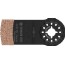 Insticksågblad med grov beläggning av hårdmetallkorn för arbete i nötande material. För instickssågning i murbruk, puts, klinker- och kakelfog, lättbetong etc. Passar utmärkt för arbete med byten av kakel och klinker. Dubbeldesign för maximal effektivitet. Kurvformad sågyta. Starlock-fäste som passar de flesta multifunktionsverktygen på marknaden.