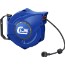 Stängd kabelupprullare i robust konstruktion. Stark, bromsad inrullning och kabelstyrning som guidar kabeln säkert och exakt i huset. För att förhindra fallolyckor är stoppbollen gjord av ett mjukt material och kabeln i ett högkvalitativt gummi. Försedd med en överbelastningskrets som bryter strömförsörjningen vid överbelastning. Levereras med anslutningskabel och svängbart väggfäste 180°. Idealisk för en säker arbetsplats. Enkel att montera i tak eller på vägg och kan enkelt plockas bort och sättas tillbaka. Max belastning avser in-/utrullad.
