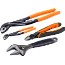 Tång- och skiftnyckelsats i 4 delar. Tänger tillverkade av högkvalitativ stållegering, med svartoxiderad finish och rostskyddsbehandlad. Skiftnyckel tillverkad av högkvalitativ stållegering, fosfaterad, precisionshärdad och rostskyddsbehandlad.