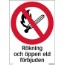 Skylt rökning och öppen eld förbjuden