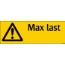 Hårdplastskylt med varningssymbol för generell fara, och text Max last samt utrymme för egen text.