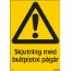 Skylt skjutning med bultpistol pågår