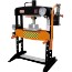 15 tons verkstadspress av bänkmodell. Extra kraftig konstruktion med rundade former. Tvåstegspump och inbyggd säkerhetsventil mot överbelastning. Hårdförkromad kolv och glidskena. Linjaler för enkel centrering av kolven i förhållande till arbetsstycket. Två V-block ingår för användning antingen på V-formad eller platt sida. Autocentrerande sprintar för bordet. Greppvänliga handtag. Försedd med verktygsbricka längst ned. Levereras med dornsats innehållande sex dorn och slagplatta.